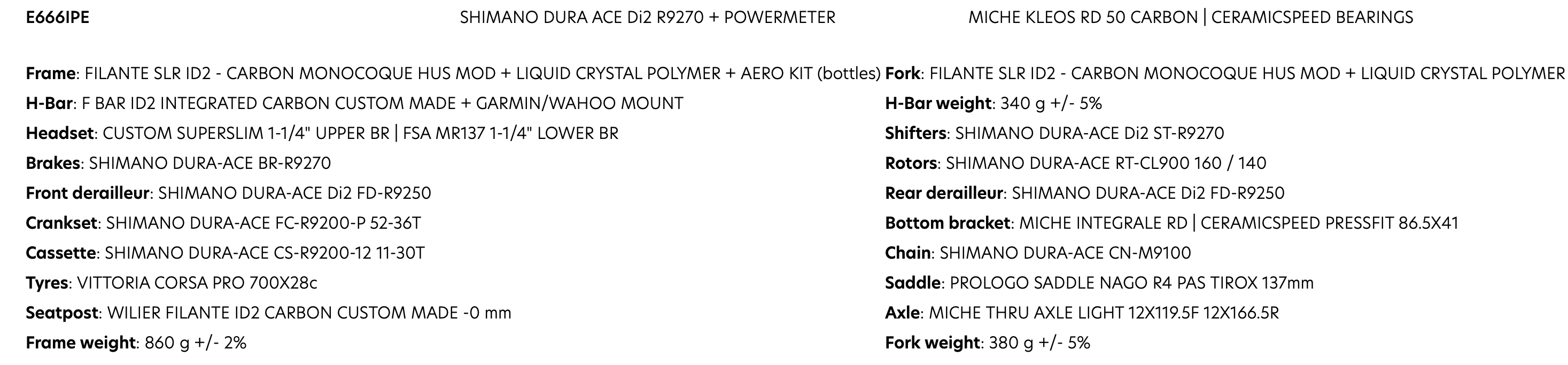 BIKE WILIER FILANTE SLR ID2 DURA ACE DI2 POWER METER KLEOS RD 50T.E.