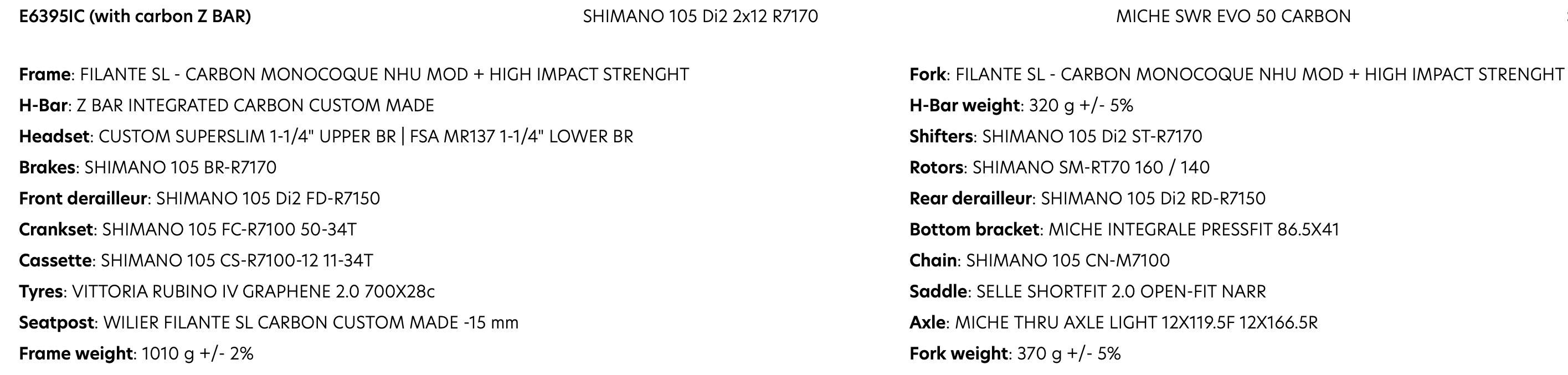 BIKE WILIER FILANTE SL 105 DI2 SWR50