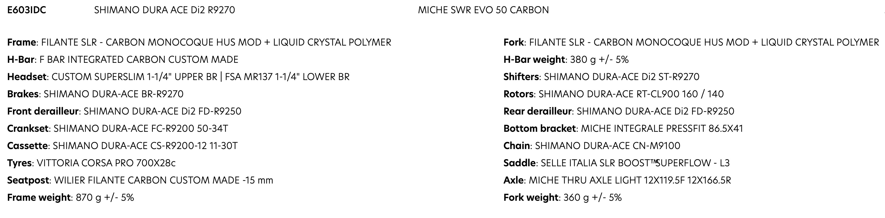 BIKE WILIER FILANTE SLR DURA ACE DI2 SWR50