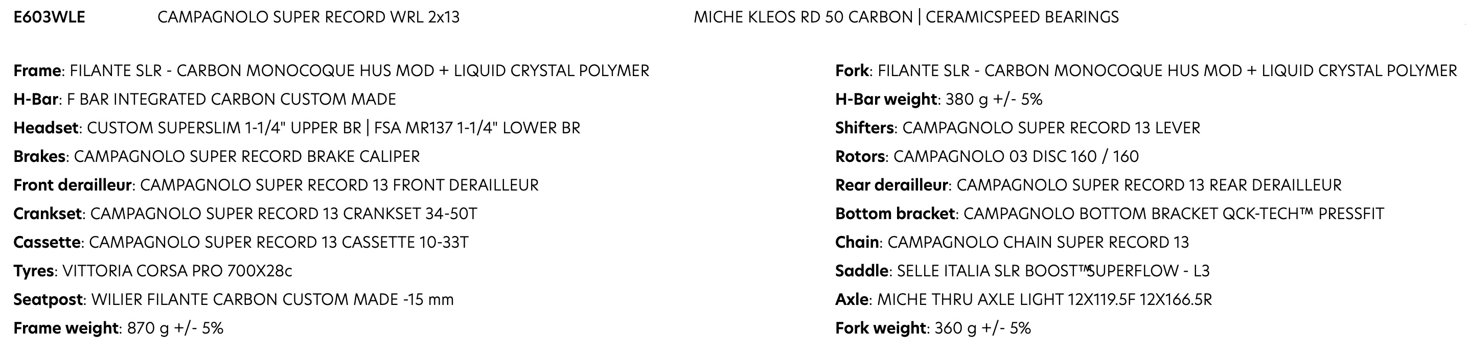 BIKE WILIER FILANTE SLR SUPER RECORD WRL 13S KLEOS RD 50