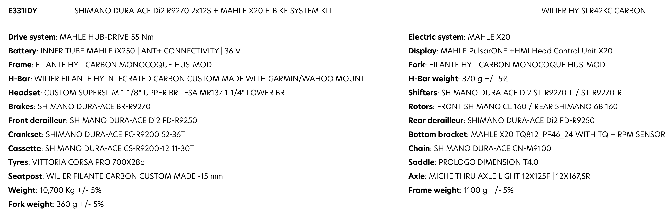 BIKE WILIER FILANTE HYBRID DURA ACE DI2 SLR42KC-X20-HY PEDAL ASSIST E-BIKE
