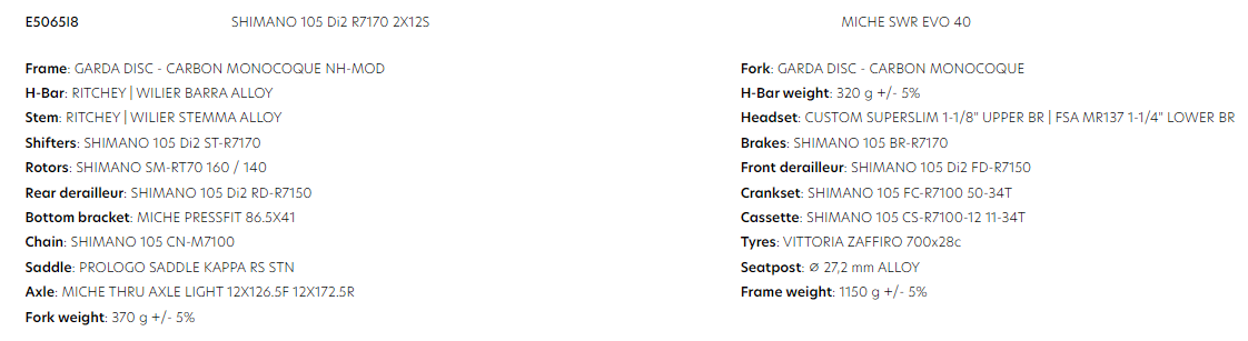 BIKE WILIER GARDA 105 DI2 R7170 SWR40