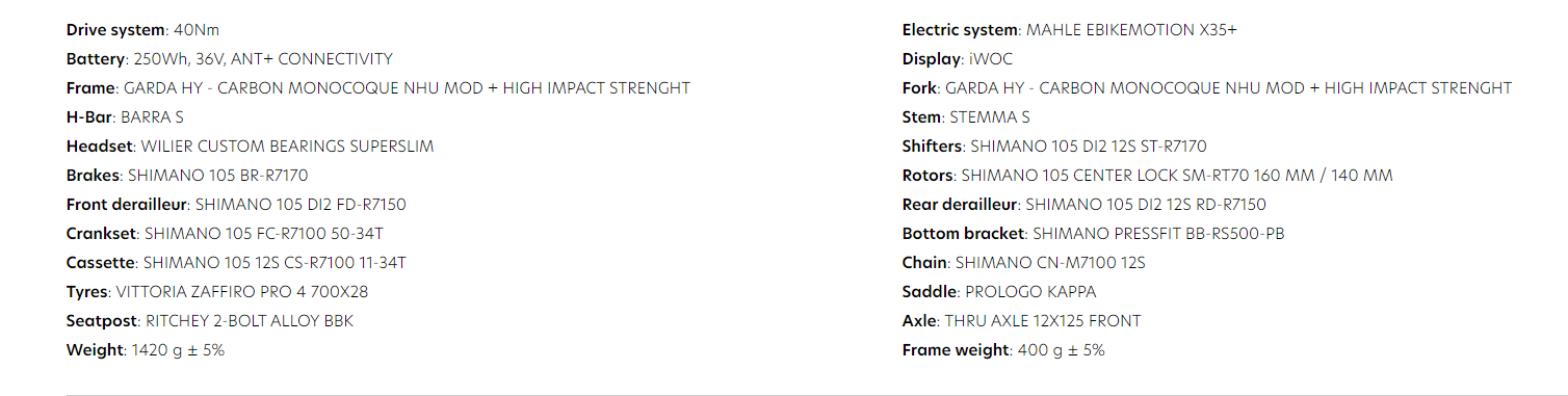 BIKE WILIER GARDA HYBRID 105 DI2 HY-NDR28 PEDAL ASSIST E-BIKE
