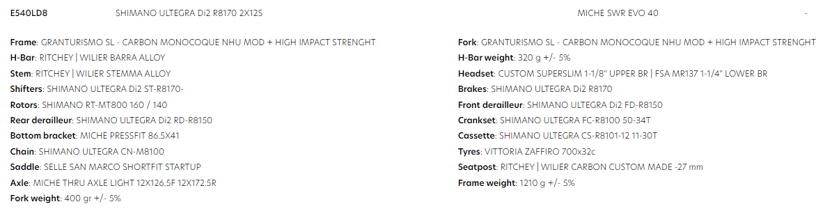 BIKE WILIER GRANTURISMO SL ULTEGRA DI2 SWR40