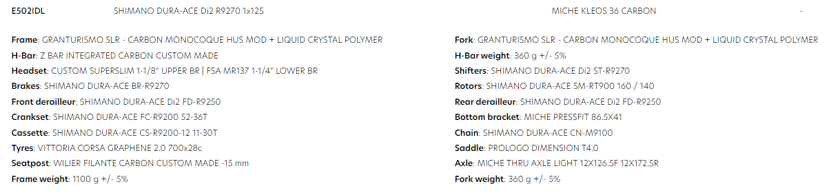 BIKE WILIER GRANTURISMO SLR DURA ACE DI2 KLEOS 36