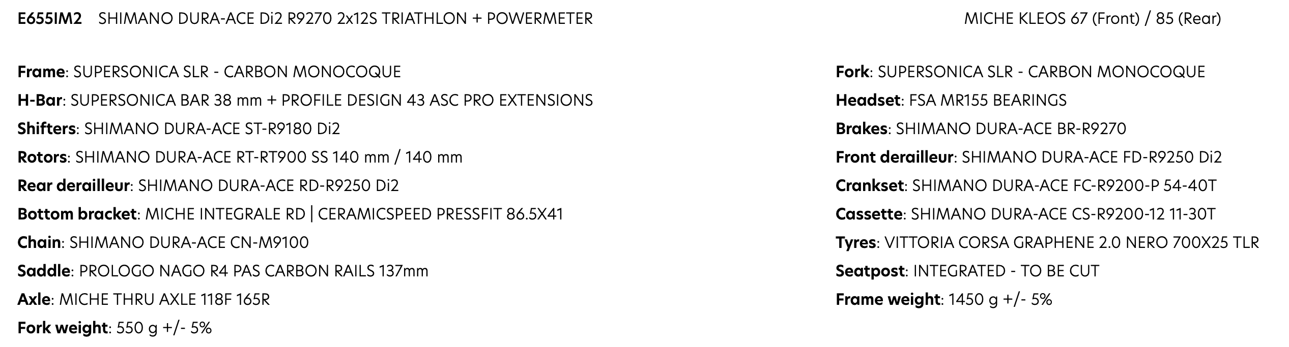 BIKE WILIER SUPERSONICA DURA ACE R9280 TT POWER METER KLEOS 67/85