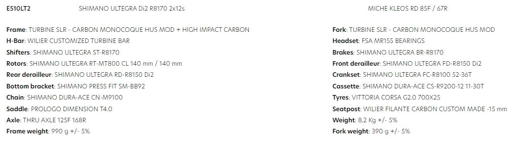 BIKE WILIER TURBINE SLR ULTEGRA DI2 R8170 KLEOS 67/85