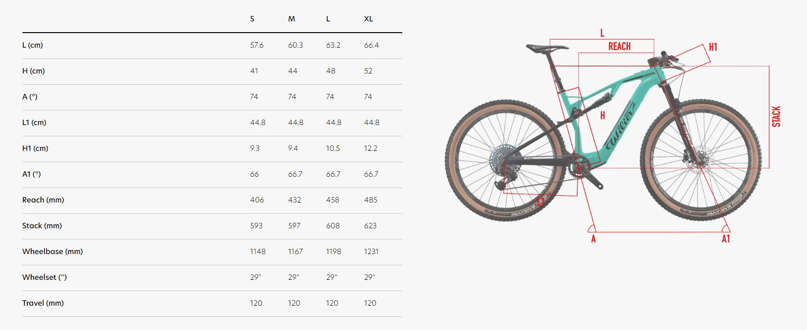 COMPACT, SAFE, POWERFUL The 120 mm travel (both front and rear) and the aggressive geometries make Urta Hybrid compact, safe and powerful. In detail, the geometries feature a longer reach for keeping them centered and tucked within the frame, a 75° seat tube for increased responsiveness in the push stage and a head tube angled at 66.5° for greater maneuverability.