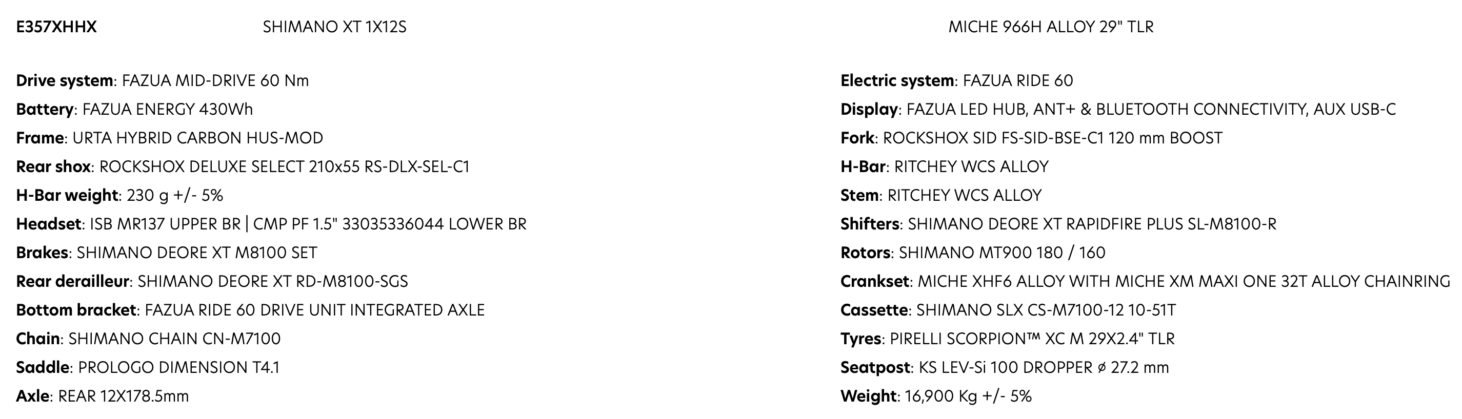 BIKE WILIER URTA HYBRID XT 966H SID RL 120 PEDAL ASSIST E-BIKE