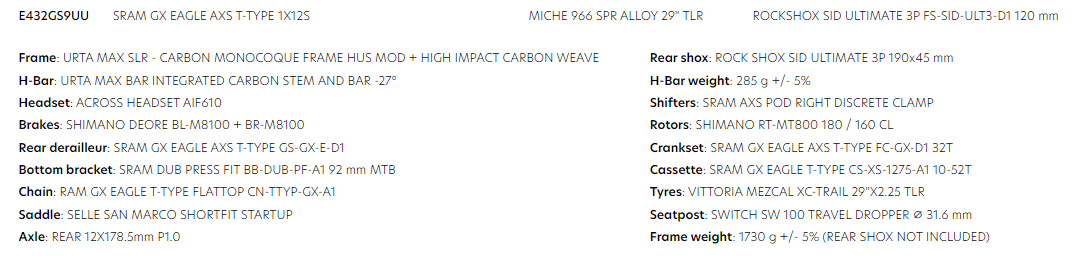 BIKE WILIER URTA MAX SLR GX TRANSMISSION 1X12 966 SIDULTIMATE120