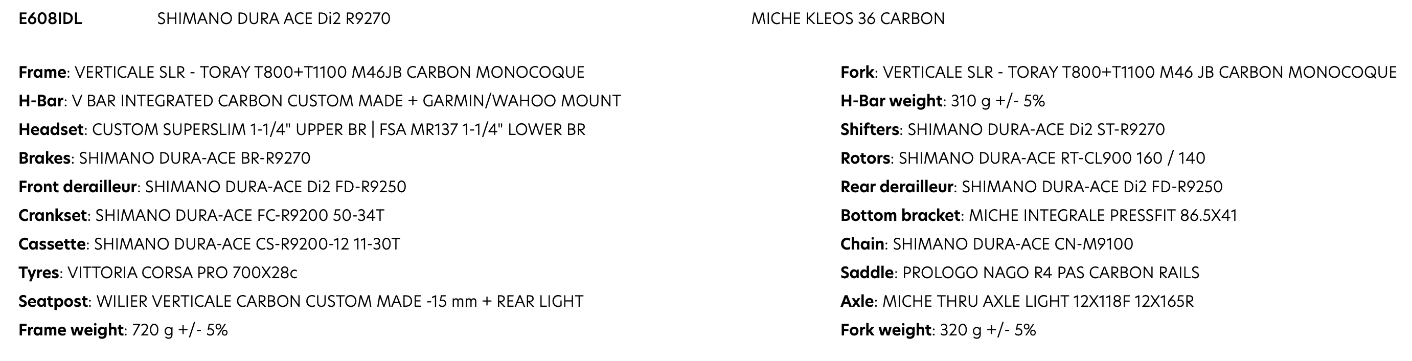 BIKE WILIER VERTICALE SLR DURA ACE DI2 KLEOS 36