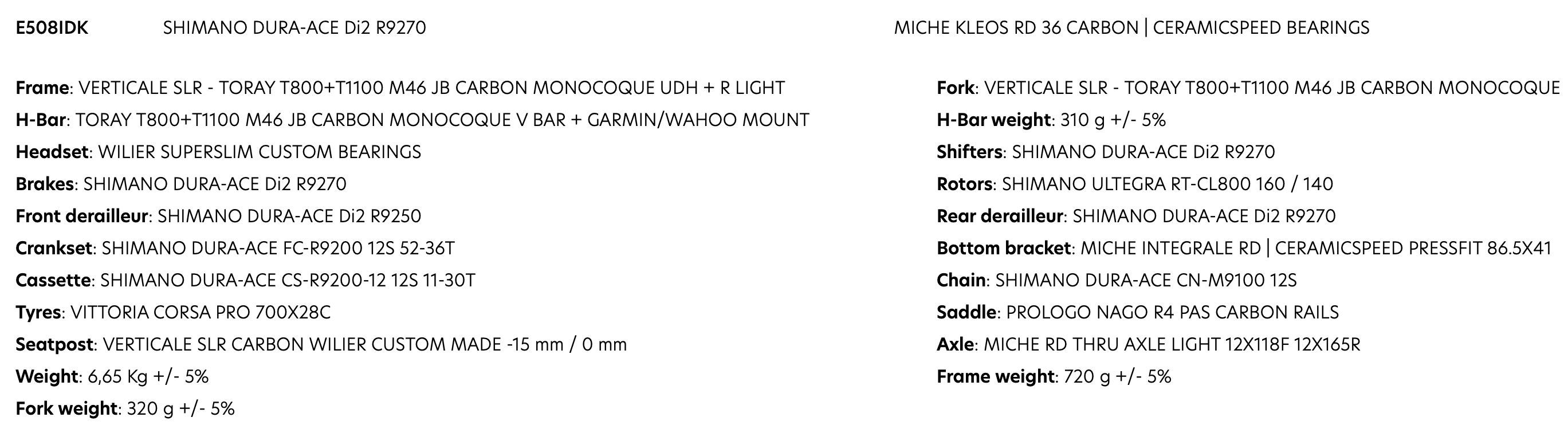 BIKE WILIER VERTICALE SLR DURA ACE DI2 KLEOS RD 36