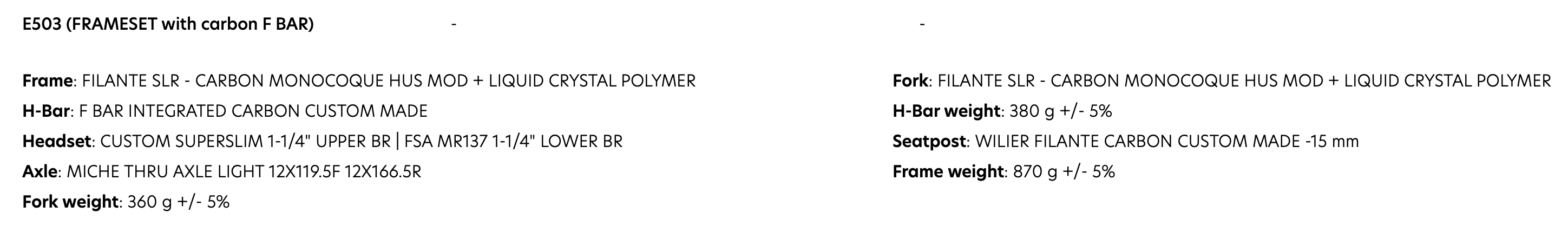 FRAMESET WILIER FILANTE SLR DISC + FILANTE BAR